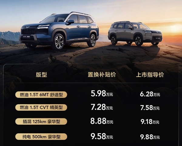 1月15日,五菱星光560上市,共推出4款车型,售价区间为6.28-9.88万,置换补贴价5.98-9.58万。